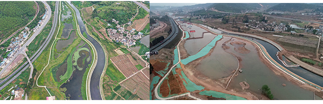 4.楚雄市龍川江西觀橋斷面水體達(dá)標(biāo)工程,通過實(shí)施污染底泥疏浚、橡膠壩、生態(tài)河堤建設(shè)、生態(tài)濕地恢復(fù)等一系列水環(huán)境治理及水生態(tài)修復(fù)工程,龍川江西觀橋國控?cái)嗝嬉延?span>2019年從重點(diǎn)整治的劣Ⅴ類國控?cái)嗝嬷幻摿?,提前一年達(dá)到水環(huán)境功區(qū)劃IV標(biāo)準(zhǔn)。
