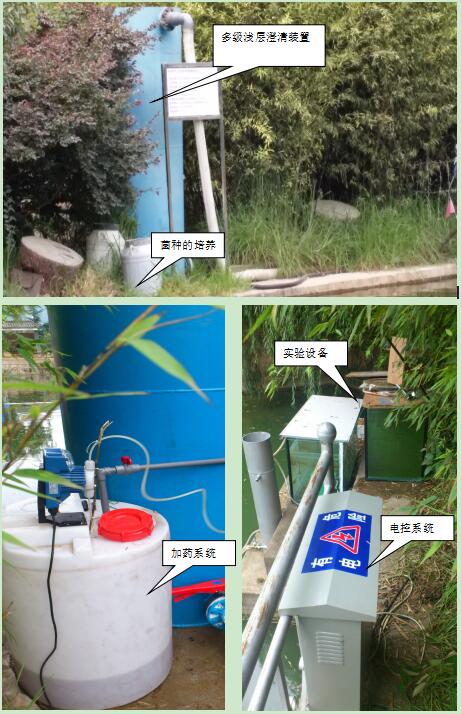 項目采用有效微生物菌技術(shù)結(jié)合循環(huán)凈水工藝對小型湖泊、池塘、水庫等污染匯富營養(yǎng)化水體進行原位、異位結(jié)合修復(fù),首次提出了富營養(yǎng)化水體藻菌共生概念,快速建立水體生態(tài)自凈平衡系統(tǒng),實現(xiàn)對水體富營養(yǎng)化的根本治理。通過對天然沸石超微改性后,配合常用凈水劑復(fù)合制得物理型助凝劑(JYX-助凝劑),吸附、脫色、助凝等功能優(yōu)異,可有效吸附水中氮磷。研制出漂移式多功能凈水設(shè)備,集凈化除藻、投菌、充氧、噴泉景觀等功能于一體,具有節(jié)能、降濁、除藻效率高、投資少等優(yōu)點。利用該工藝處理后的水質(zhì)符合地面水環(huán)境質(zhì)量標(biāo)準(zhǔn)中的Ⅲ類水質(zhì)標(biāo)準(zhǔn)。