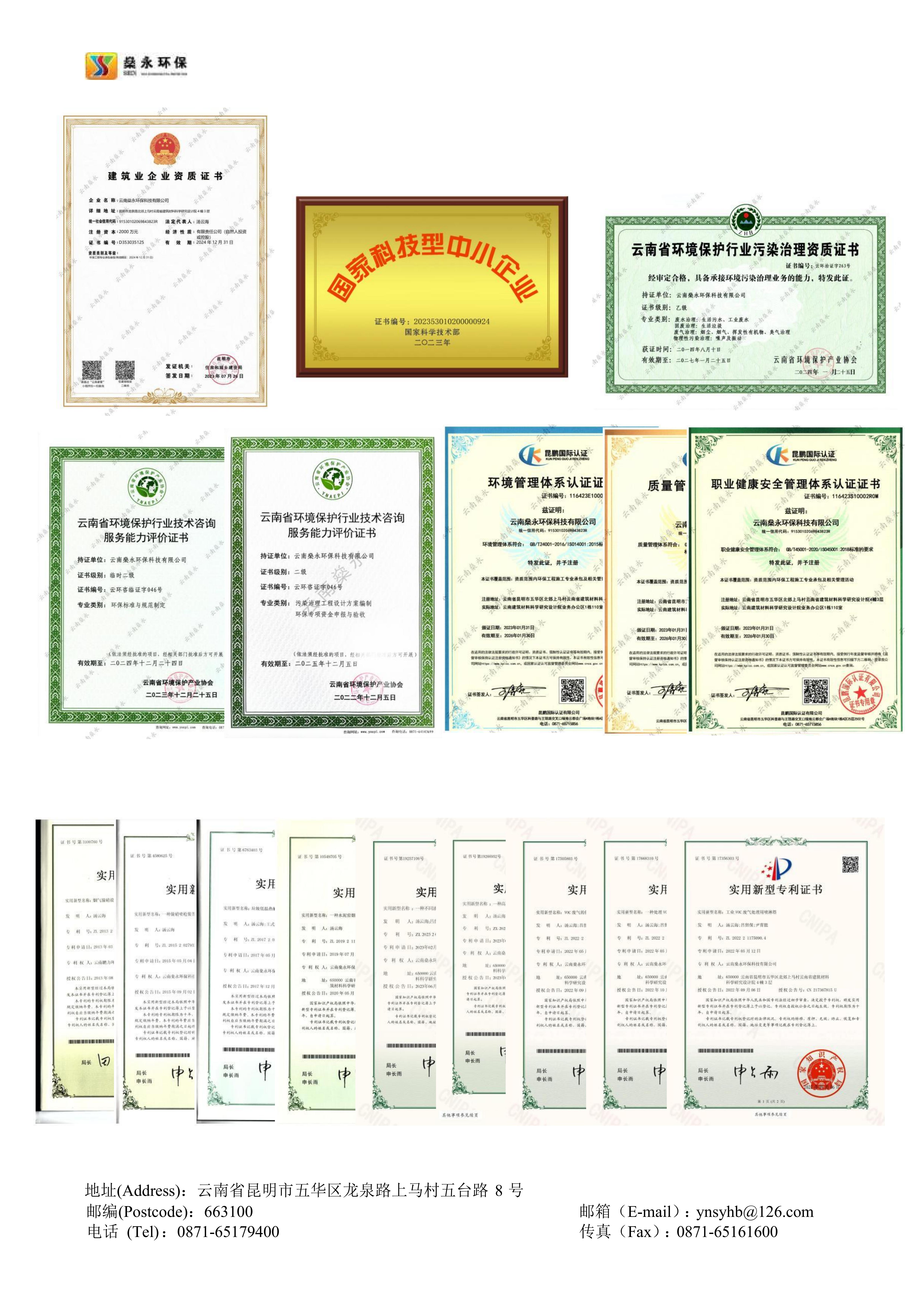 燊永公司堅持“創(chuàng)新、協(xié)作、共贏”的價值觀,以“專業(yè)、專心、專注”為服務理念,以“求實、求是、求精”為質量宗旨,為客戶提供優(yōu)質、高效、貼心的服務。公司獲得國家專業(yè)部門頒發(fā)的《環(huán)境工程專業(yè)承包三級》資質、《污染治理乙級》資質、《企業(yè)信用等級A級》證書、《云南省科技型中小企業(yè)》認定證書、《ISO9001/GBT50430質量管理體系》證書、《ISO14001環(huán)境管理體系》證書、《ISO45001職業(yè)健康安全管理體系》證書等多項榮譽和多項的專利技術。