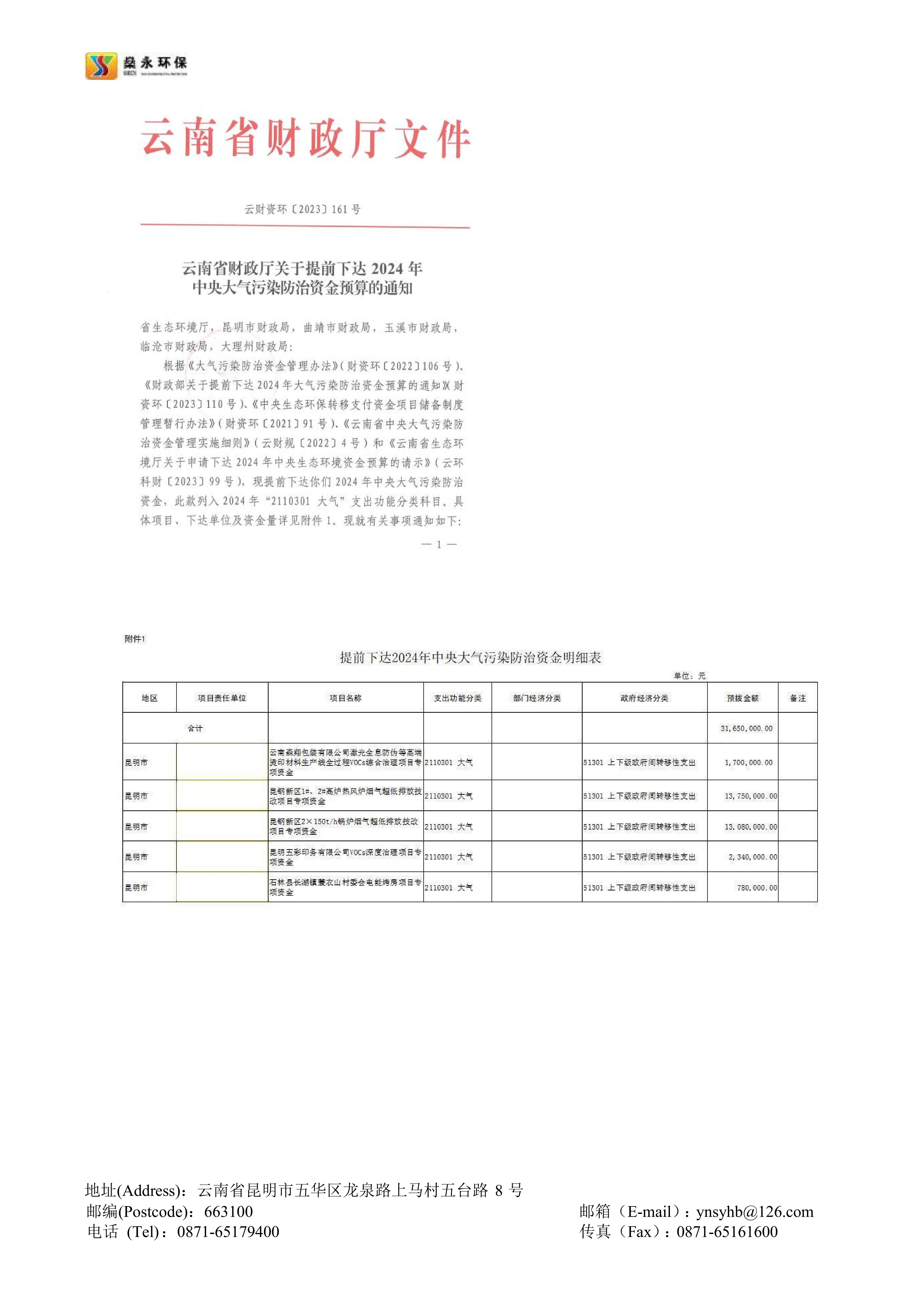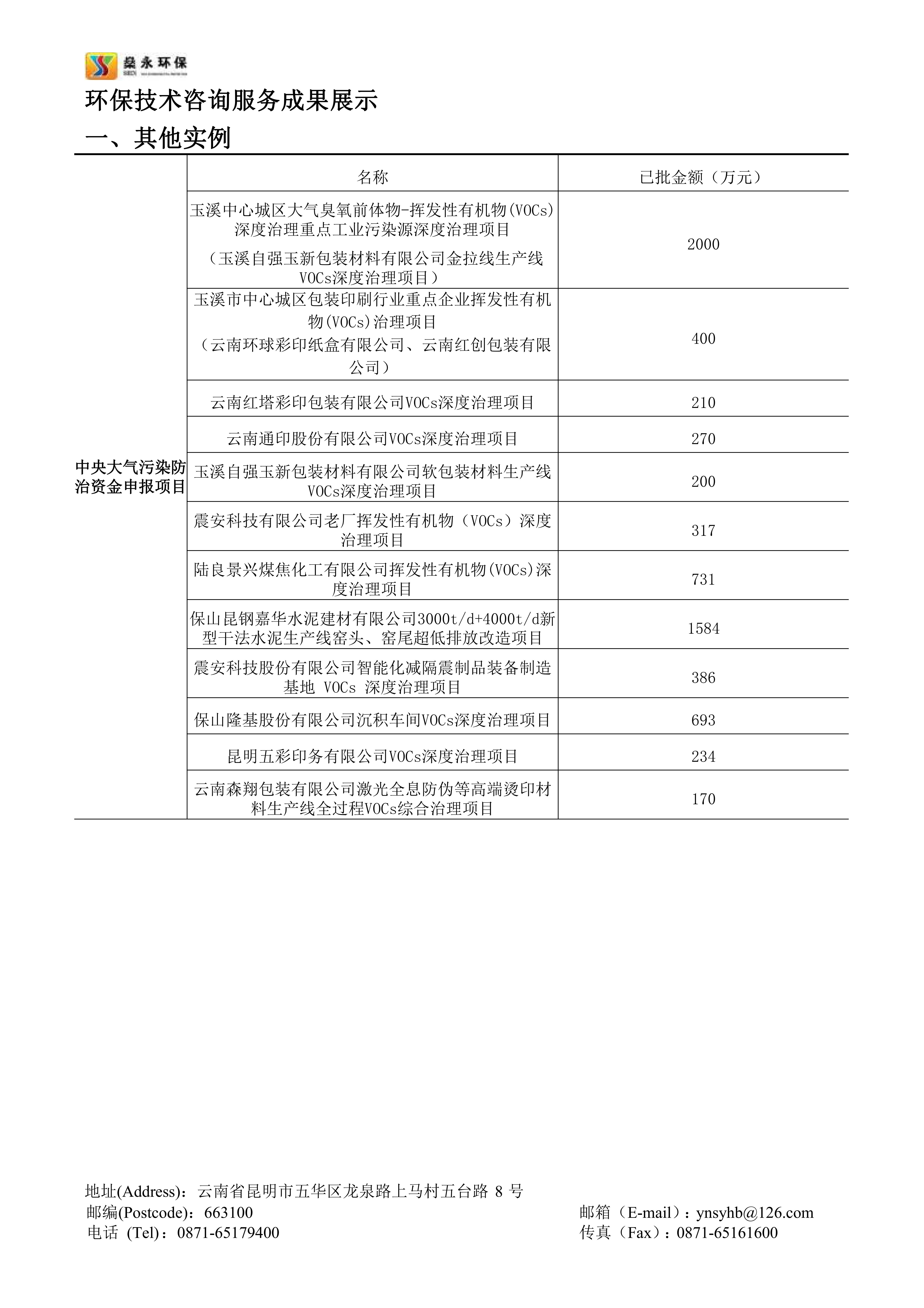 截止2023年10月,公司幫助云南省多個行業(yè)企業(yè)成功申報的中央大氣污染防治資金已入庫項目共計20余個,申報項目已獲批總資金近一億余元。公司承接的云南省內中央大氣污染防治資金申報項目申報成功率高,成效顯著,服務細致高效,在云南省中央大氣污染防治資金申報領域具有豐富的經驗。